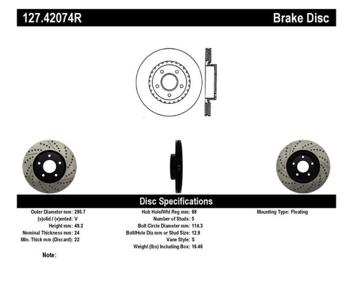 StopTech 1/02-05 Infiniti G35 (alloy disc) / 6/02-05 Nissan 350Z Slotted & Drilled Right Front Rotor