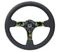 NRG Reinforced Steering Wheel (350mm/ 3in. Deep) Matte Black Spoke/Black Leather/ Yellow Center