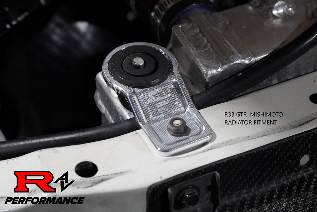Custom billet radiator mounts that fit all r32 r33 & r34 skylines with factory or after market radiators.