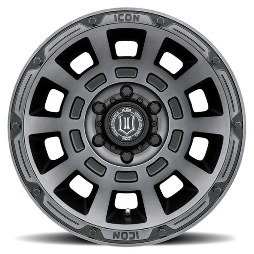 ICON Thrust 17x8.5 6x5.5 0mm Offset 4.75in BS 106.1mm Bore Smoked Satin Black Wheel