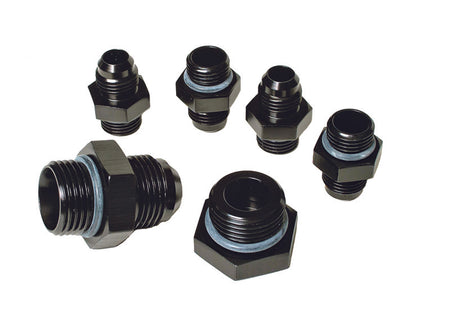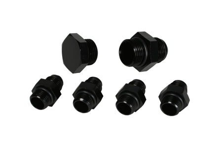 For Regulator P/N 13202 in dual carburetor setups. Contains: (4) AN-06 to AN-06 Male Flare Fittings, (1) AN-10 to AN-10 Male Flare Fittings, (1) AN-10 Port Plug. More area and smoother transitions from the inlet to the outlet, resulting in less restriction than any other fitting line. The Aeromotive line of custom fittings, adapters and hose-ends are a step above the norm, offering uncompromised fuel flow and positive sealing. Constructed of 6061 T6 aircraft grade aluminum or stainless steel, each component is CNC-machined for precision fit and unmatched flow. All billet aluminum fittings are anodized Type II bright dip black for corrosion protection and unrivaled aesthetics. We offer a complete line of hard to find fittings from OEM specific connections to AN adapters.?All Aeromotive fittings and adapters are fully compatible with gasoline and alcohol based fuels.