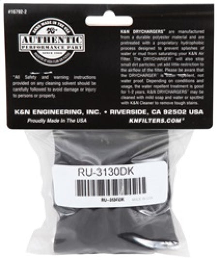 The K&N Drycharger is a silicone treated, polyester wrap that is made to cover K&N Air Filters or Personal Watercraft Flame Arrestors. These Drychargers, which are similar to the K&N Prechargers, contain uniform micron sized openings that allow high air flow. Yet, due to the Drychargers silicone treated polyester wrap, the amount of water that reaches the air filter or flame arrestor is limited.