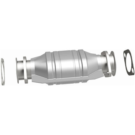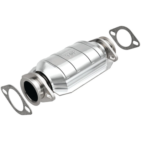 Keep the check engine light off with MagnaFlow OEM Grade Federal/EPA Compliant Direct-Fit Catalytic Converter 51237. With features including free-flowing mandrel-bent tubing and highly corrosion resistant stainless steel construction, easily install this converter yourself using the proper tools, no cutting or welding required. MagnaFlow's state-of-the-art metrology department uses the latest 3D scanning systems during research and development, so you can be confident that your new part will fit and function like the original equipment. By replicating the OE design, the single laser fusion weld greatly reduces the possibility of a leak, and our compact, low-mass design also allows for greater thermal efficiency. This Direct-Fit Catalytic Converter is designed to fit the 1995-1998 Nissan 240SX 2.4L & 1998-2001 Nissan Altima 2.4L. MagnaFlow 51237 includes (2) Flange Gaskets and interchanges with OE parts 20300-70F00, 20800-56G27, 20800-56G28, 20800-5M700, 20800-5M725, 20800-88Y25, 20800-88Y26, 20800-9E700, 20800-9E725. This replacement part is designed to meet or exceed Federal emissions requirements set forth by the EPA, complying with legal standards for OBDII Federally registered vehicles with California or Federal/EPA Emission systems.