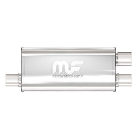 The MagnaFlow 5 X 8in. Oval Straight-Through Performance Exhaust Muffler 12266 is engineered to enhance your ride with a healthy helping of our signature exhaust sound and dyno-proven performance thanks to its free-flowing straight-through perforated stainless steel core wrapped in stainless steel mesh and acoustic fiber fill. The reversible, universal 2.5/2.25in. diameter inlet/outlet Straight-Through layout allows you to install it in whatever orientation and configuration you see fit. However, professional installation is highly recommended. Muffler 12266s weight-optimized 5x8x18in. oval-shaped body features a satin finish that elevates the overall aesthetics of your current exhaust setup. 12266 is made of durable, corrosion resistant stainless steel and produced using cutting-edge CNC precision robotic manufacturing techniques, all backed by MagnaFlow's limited lifetime construction warranty.