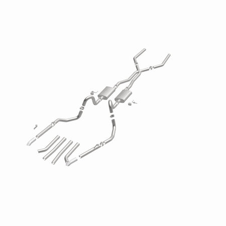 The MagnaFlow Street Series Crossmember-Back Performance Exhaust System 15893 brings enhanced engine sound and dyno-proven performance to your muscle car with a healthy helping of our deep, resonant signature exhaust note at Moderate exterior and Mild interior sound levels. Thanks to its durable, corrosion resistant stainless steel design, this exhaust system will handle whatever tarmac you decide to leave your mark on. This performance exhaust kit features a crossmember-back layout designed to replace your exhaust system from the crossmember on back. With its fast-flowing, mandrel bent 2.5in. main piping and 2 Straight-Through mufflers ending in a Multiple Exit Options exit with 2.75in. Polished Weld-On Single Wall Turndown Cut Edge tips, your muscle car will be sounding as awesome as it looks. Extensive 3D scanning during development has resulted in a direct-fit design that you can easily install yourself. 15893 is produced using CNC precision robotic manufacturing techniques and is backed by MagnaFlow's limited lifetime construction warranty.