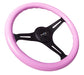 NRG Classic Wood Grain Steering Wheel (350mm) Solid Pink Painted Grip w/Black 3-Spoke Center