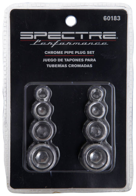 Spectre's pipe plug set includes 8 threaded NPT plugs. These plugs are ideal to plug unused holes in intake manifolds, engine blocks or any location where a threaded hole is not needed. These plugs are triple chrome plated ensuring they perform as good as they look. This kit includes 2 of each in the following 4 sizes; 1/8 inch NPT, 1/4 inch NPT, 3/8 inch NPT and 1/2 inch NPT.