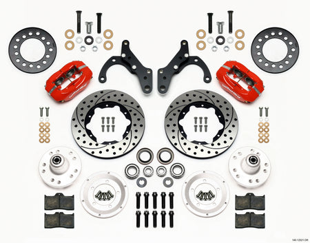 Wilwood Forged Dynalite Front Kit 11.00in Drill-Red 65-68 Chevy Impala -Drum Spindle